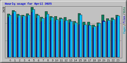 | Hour | Hits | Files | Pages | KBytes | ||||||||
